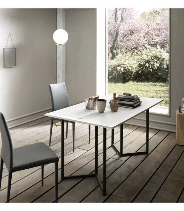 SI APRE A LIBRO DANDO VITA AD UN ORIGINALE TAVOLO DA PRANZO O TAVOLO STUDIO ADEGUANDOSI PERFETTAMENTE ALLO SPIRITO LIBERO DI CHI CONSIDERA IL “CAMBIAMENTO” UNA COSTANTE.