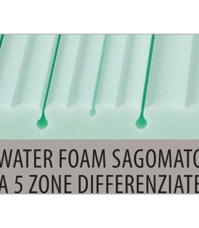 Water Foam possiede capacità fisiomeccaniche straordinarie in grado di rispondere in modo personalizzato e ancora più equilibrato alle sollecitazioni e pressioni del corpo su tutta la superficie del materasso. Estremamente duttile e versatile, questo materiale consente speciali lavorazioni interne in grado di inserire zone differenziate con varie portanze e diverse densità. I materassi in Water Foam garantiscono una estrema durata negli anni, senza rigidità