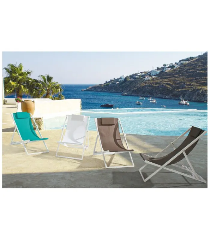 STRUTTURA IN ALLUMINIO, VERNICIATO A POLVERE (POLIESTERE). SEDUTA E SCHIENALE IN TEXTILENE 2X1 (610G/M2). FERRAMENTA IN ACCIAIO GALVANIZZATO. TRE POSIZIONI.
