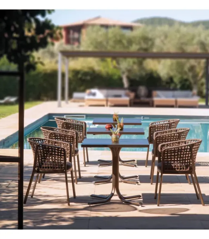 È realizzata con la struttura in alluminio verniciato, la scocca è realizzata in poliestere e corda sintetica. È disponibile in 4 abbinamenti di colori, come nelle foto.
