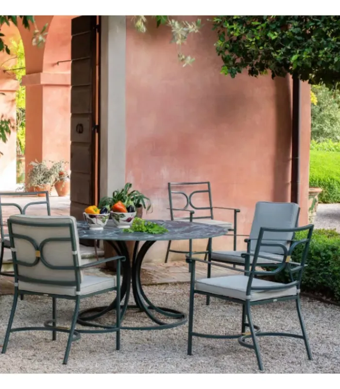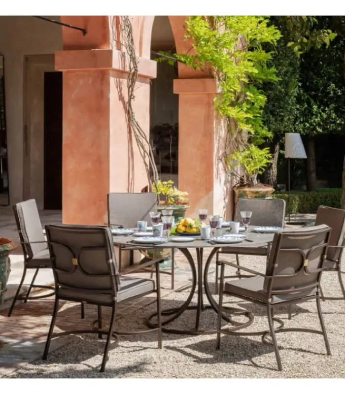 Pensata per trasformare ogni spazio esterno in un angolo di stile e comfort, COLLIER unisce materiali di alta qualità a una lavorazione attenta ai dettagli. La sua struttura leggera ma robusta, arricchita da un inserto in ottone dal gusto raffinato, la rende un elemento d’arredo ideale per giardini, terrazze, verande e spazi contract.