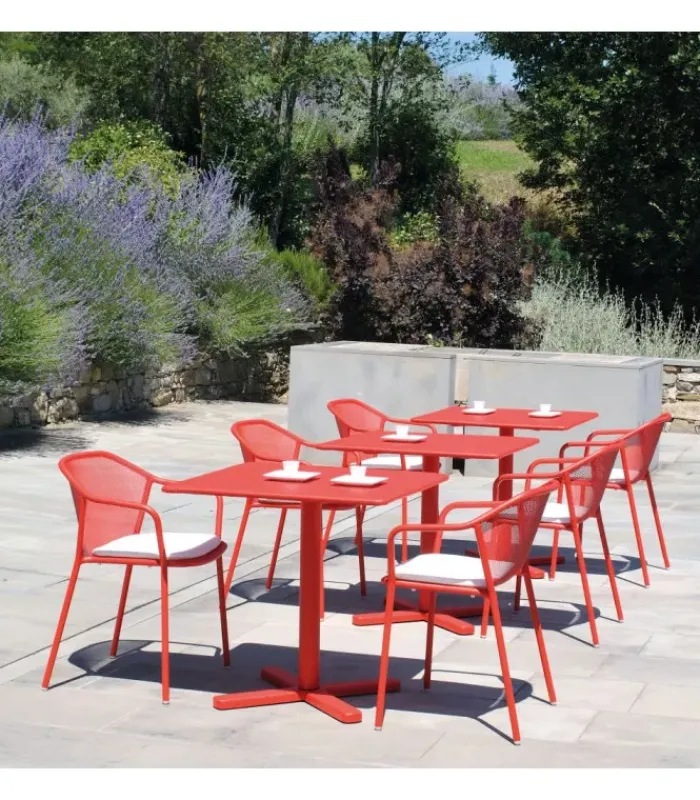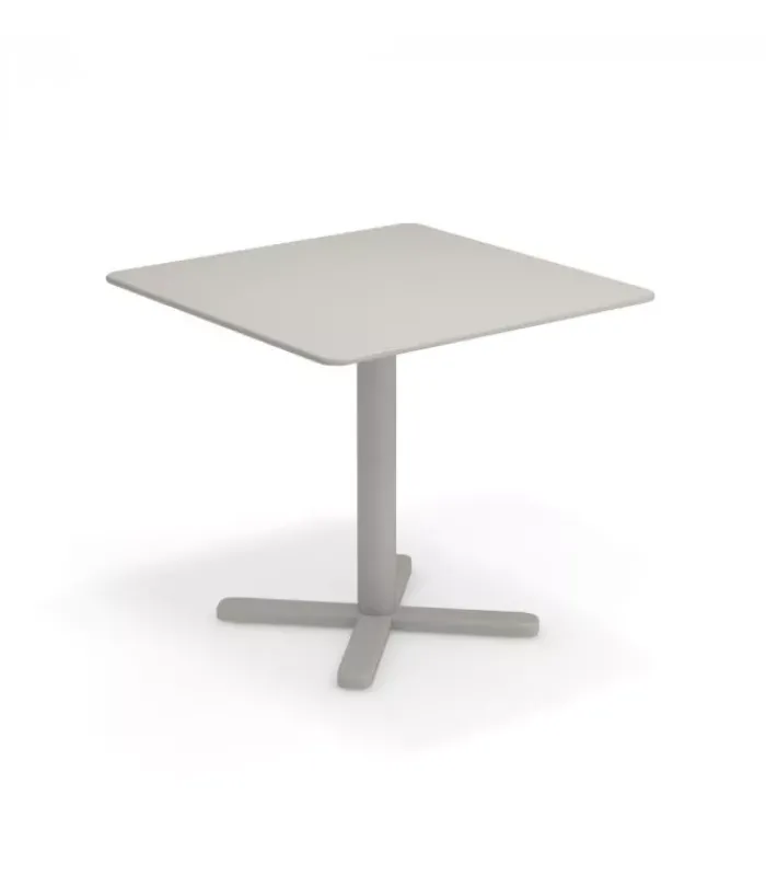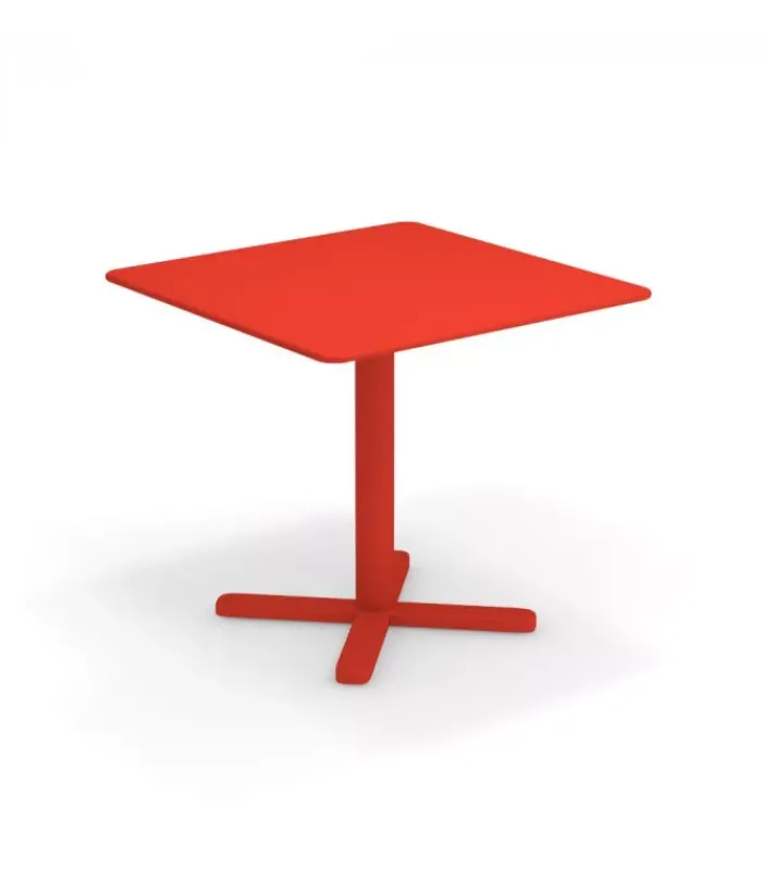 Tavolino con struttura in acciaio verniciato e piano in lamiera pre zincata a caldo e verniciata.