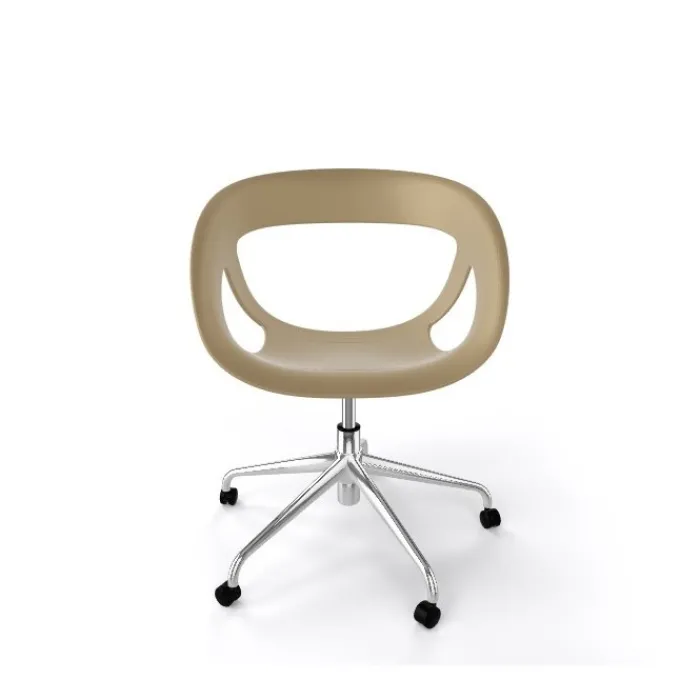 La Poltroncina Moema 5R fa parte di una famiglia di prodotti che rende questo guscio in tecnopolimero fruibile nei diversi ambienti della casa, delle comunità e dell’ufficio. Il basamento rende possibile questa metamorfosi, disponibile oltre che con le 4 gambe anche con diversi basamenti girevoli, con e senza ruote.