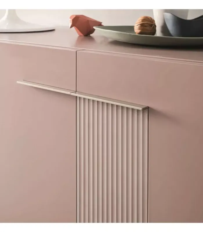 La maniglia tono su tono è un elemento funzionale, che crea delle linee sottili e decorative sull’arredo.