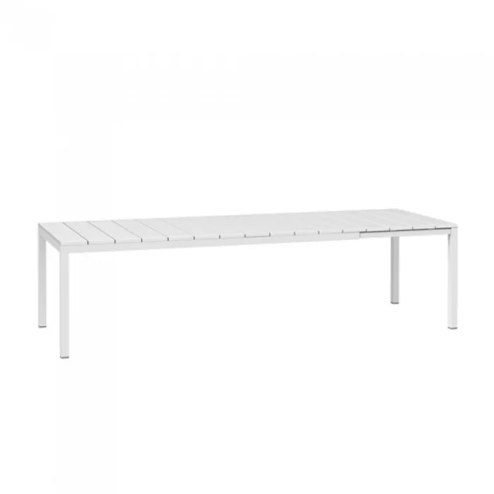 – Il tavolo rettangolare RIO estensibile è disponibile in due misure, 140 e 210 cm. èd è dotato di allunga laterale che rimane sempre a filo gamba, in questo modo non intralciano mai la seduta. Il piano è in DurelTOP e la struttura in alluminio verniciato, con piedini regolabili.