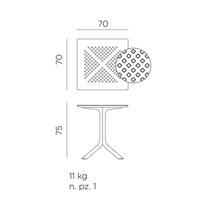 CLIPX, tavolo quadrato in polipropilene colorato per esterni, Solido, allegro e funzionale, sono le caratteristiche principali di questo tavolo dalle dimesioni contenute.
