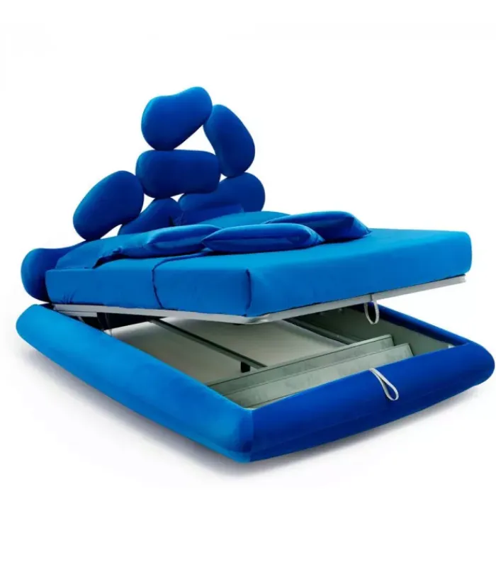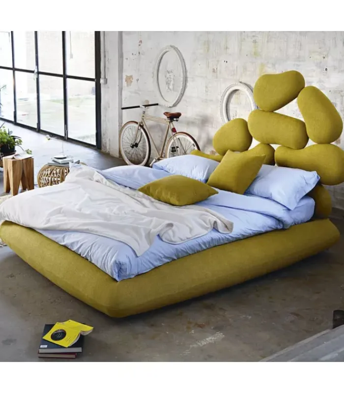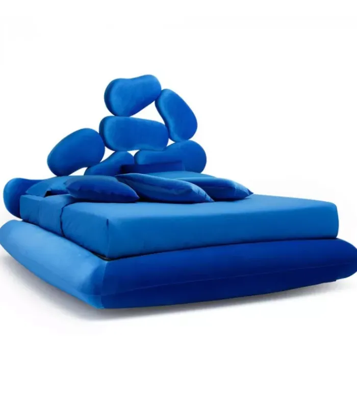 Le linee dell’ormai famoso “letto con le pietre” sono scolpite nell’immaginario collettivo nel mondo del letto tessile. Stones è anche disponibile nei due singoli 120 e 90. La testata in legno tagliata a pantografo viene rivestita con soffice gomma e grazie ad un sapiente lavoro di tappezzeria artigiana componente sembra veramente una pietra.
