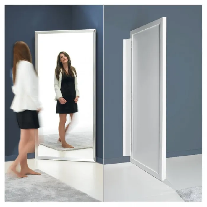 Il modello Riflesso di Pezzani, disponibile su Arredinitaly, è un angolo multifunzione che unisce guardaroba e ripostiglio a scomparsa con un design elegante e contemporaneo. La struttura è composta da un montante in alluminio reversibile, verniciato bianco e da fissare a parete, che si collega a una specchiera raffinata con finitura sablé.