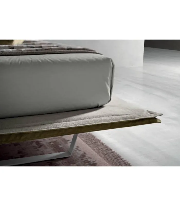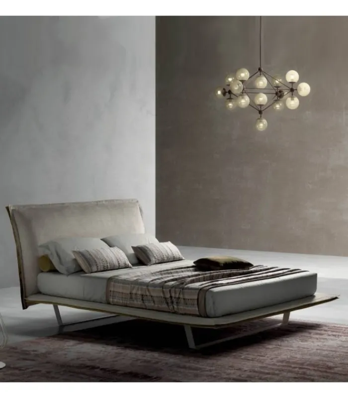 Questa soluzione, particolarmente solida, demanda alla rete la funzione portante e consente di ottenere un letto dalle linee estremamente leggere ed eleganti, che sembra sospeso.
