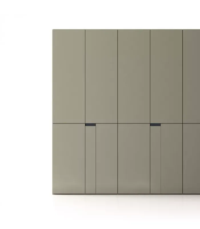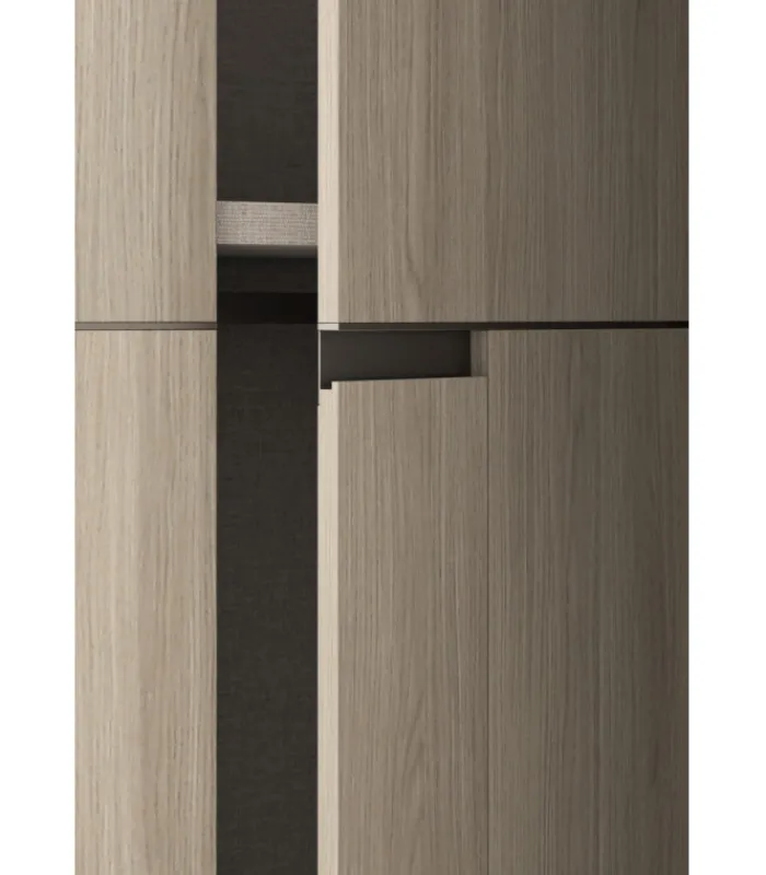 L’apertura dell’armadio viene facilitata da una maniglia di design disponibile in varie finiture metallizzate, con un effetto finale pratico e moderno.