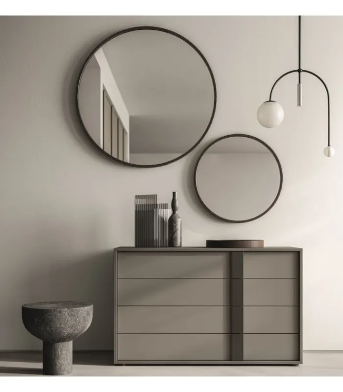Specchiera rotonda con cornice, per completare le zone della casa con riflessi di luce.