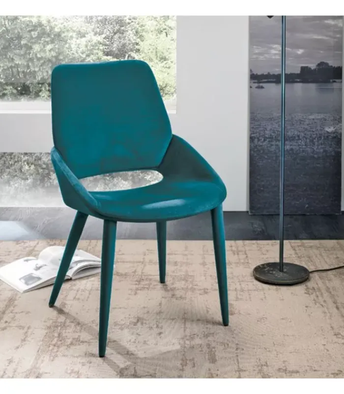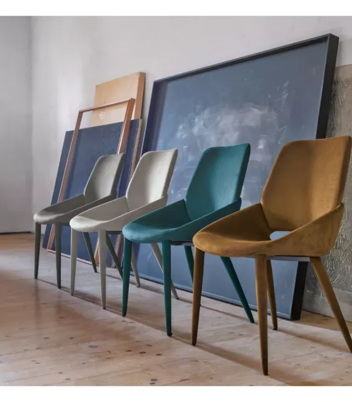 Sedia PORTLAND interamente rivestita in morbida microfibra effetto velluto. La varietà di colori disponibili, dai più accesi ai più neutri, le conferisce una versatilità tale da essere ottima per moltissimi stili di arredamenti e diverse circostanze.