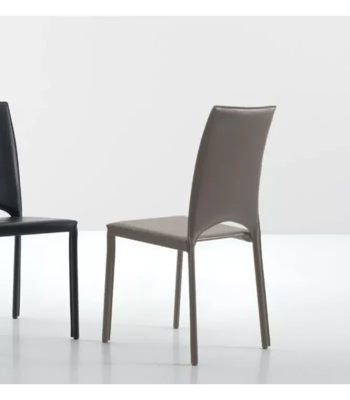 Sedia con telaio in metallo rivestito in eco-cuoio rigenerato. Cuciture in tinta. È venduta in stock da 2 pezzi.