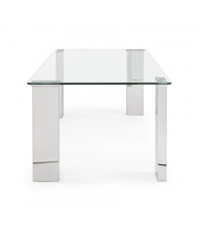Gambe in mdf rivestite con lamina in acciaio lucido- piano in vetro temperato spesso 12mm- gambe da assemblare.
