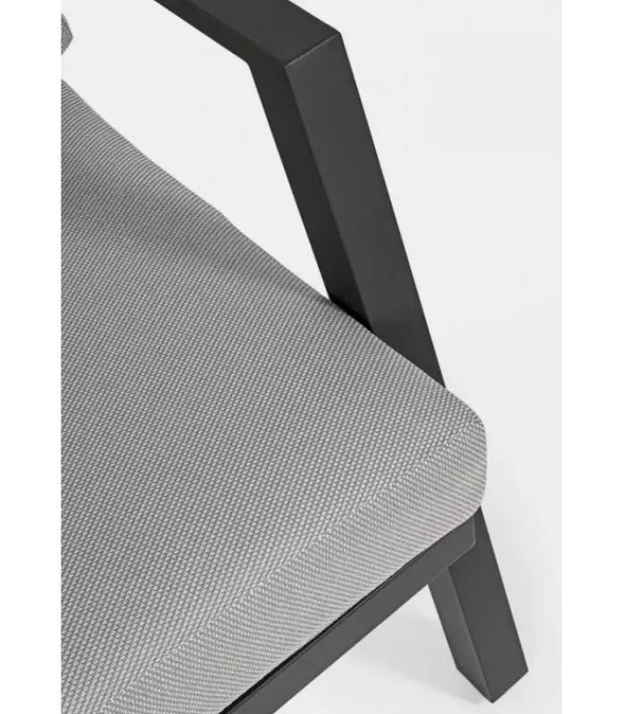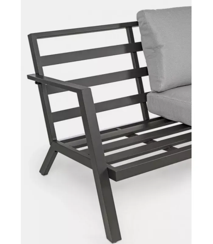 ALLUMINIO VERNICIATO A POLVERE (POLIESTERE). CUSCINI SEDUTA E SCHIENALE SFODERABILI CON TESSUTO OLEFIN (100% POLIPROPILENE). PIEDINI REGOLABILI. VITERIA IN ACCIAIO INOSSIDABILE. DA ASSEMBLARE. – DIMENSIONI IN CM. A 68 (L.) 81.5 (P.) 76 ( H.) 42.5 ( H1) – 61 ( H2) / B 127 (L.) 81.5 (P.) 76 ( H.) 42.5 ( H1) – 61 ( H2) / C 100 (L.) 60 (P.) 42 H