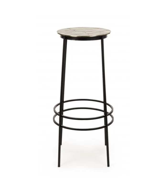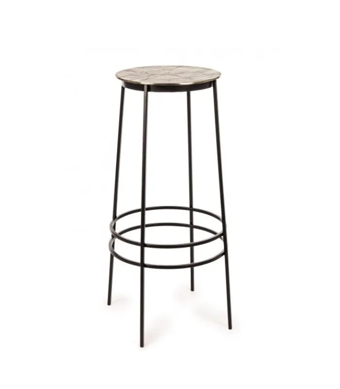 STRUTTURA IN ACCIAIO VERNICIATA A POLVERE EPOSSIDICA. SEDUTA IN ALLUMINIO CON FINITURA PLACCATA ED ANTICATA.