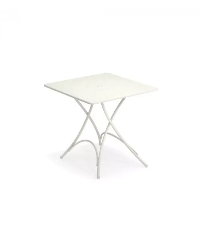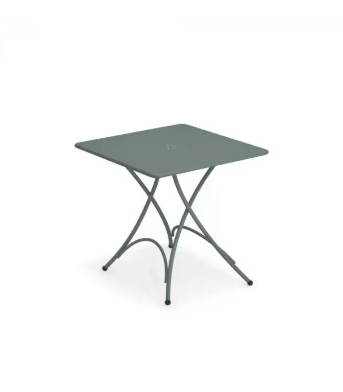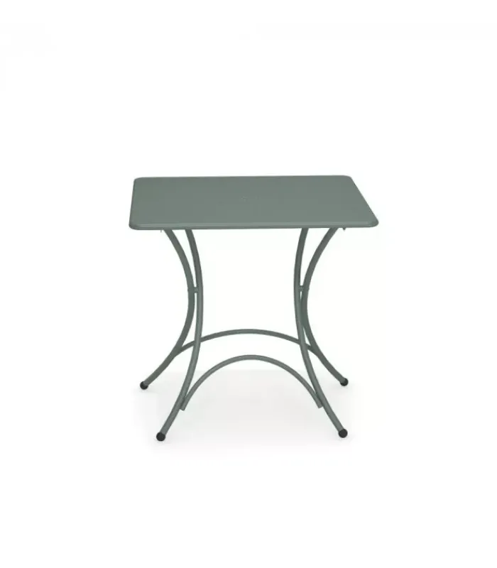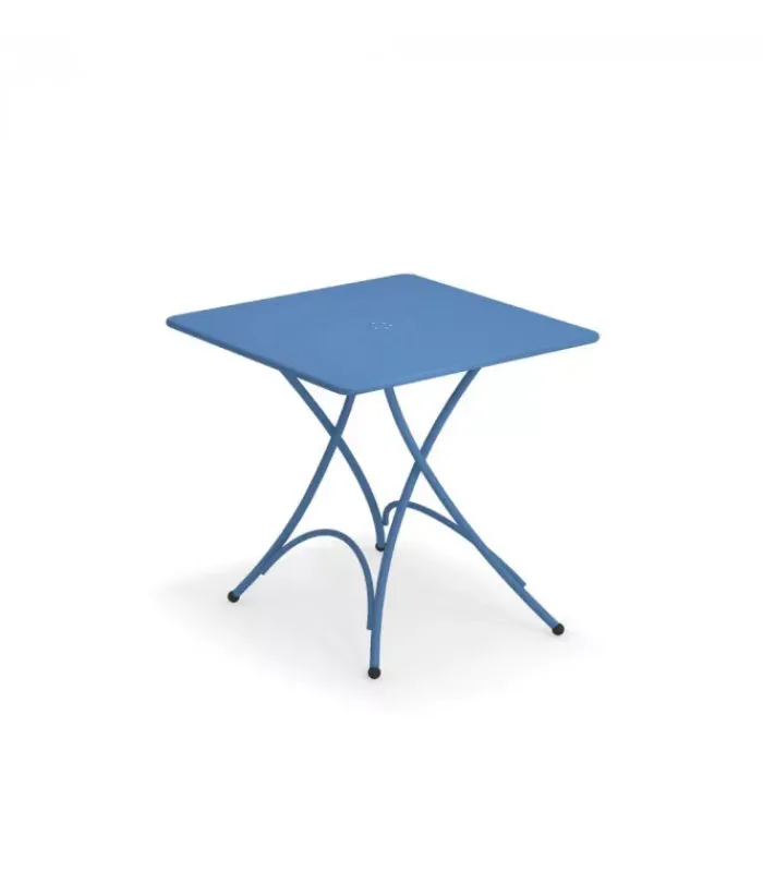 Tavolo pieghevole con struttura in acciaio verniciato e piano in lamiera pre zincata a caldo e verniciata, disponibile in moltissimi colori.