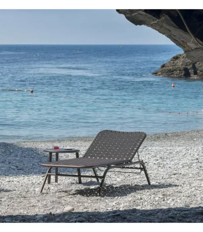 L’intreccio di cinghie elastiche, accoppiate in modo innovativo alla struttura in alluminio dalle linee sofisticate, dá vita ad un insieme dallo stile insolito ed eclettico e dal comfort accentuato, pienamente fruibile per uso esterno. Yard è una linea completa composta da sedia, poltroncina, tavoli fissi, poltrone relax, tavoli bassi di diverse dimensioni e lettino. Completano la collezione tavoli alti di varie misure per ambienti contract e residenziali.