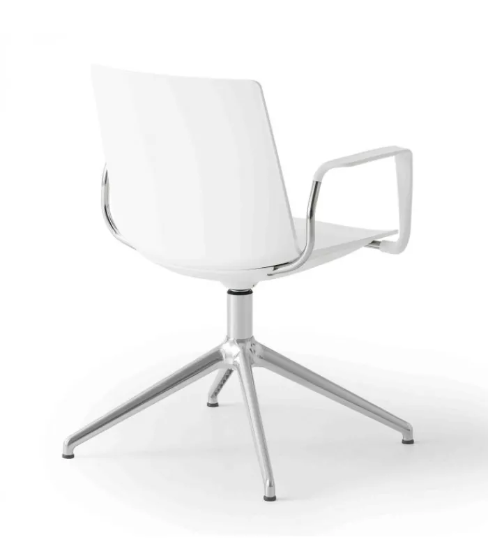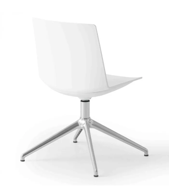 Sedia JUBEL L con o senza braccioli, girevole su basamento a 4 razze in alluminio pulito, la scocca è in tecnopolimero (disponibile in 6 colori).