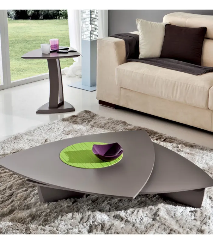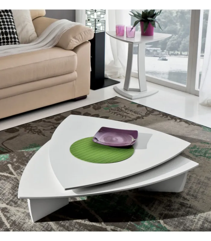 Tavolino da salotto in mdf laccato con vernici poliuretaniche opache.
