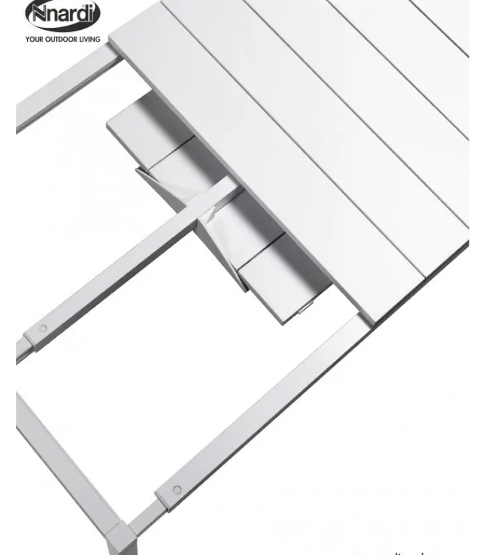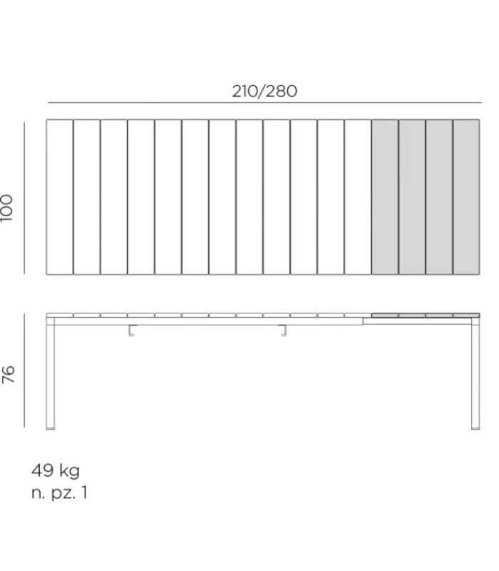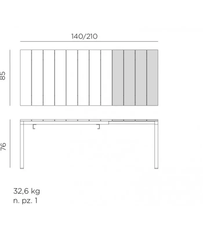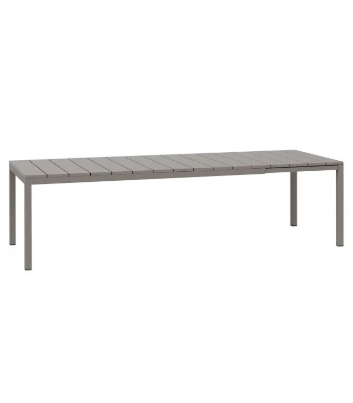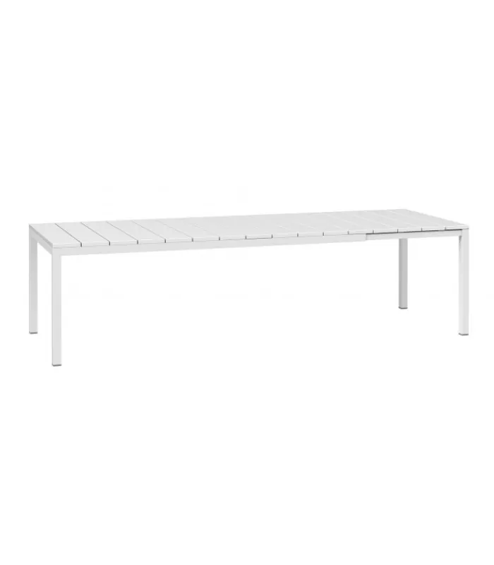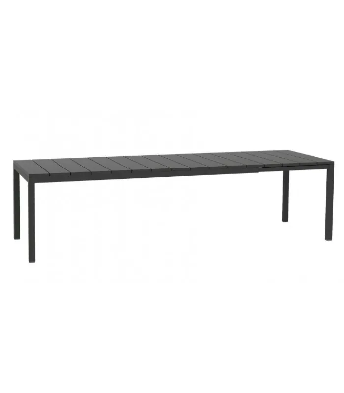 RIO, tavolo rettangolare allungabile per esterni, con gambe alluminio verniciate e piano DurelTop a doghe.