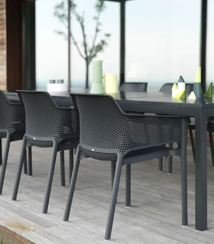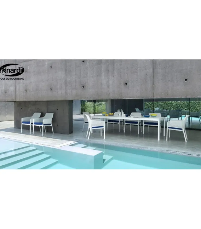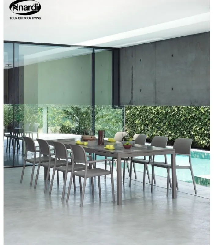 polipropilene, una resina termoplastica, accompagna da sempre la storia dell’azienda che l’ha studiata a fondo per renderlo qualitativamente ad altissimi livelli e per renderlo protagonista nel mondo del design, proponendolo in abbinamento con l’alluminio, il tessuto sintetico e il vetro o accostando e arricchendo i nuovi modelli con preziosi imbottiti. Nardi ha sempre avuto una particolare attenzione per il mondo del contract proponendo al mercato prodotti di altissimo livello. Collezioni di sedute e tavoli dai colori brillanti nel tempo, leggeri, facilmente pulibili, resistentissimi agli agenti atmosferici, metamorfici nelle misure e pratici per lo stoccaggio invernale per adeguarsi alle nuove esigenze di spazio della clientela. Una straordinaria flessibilità premiata dalle numerosissime location internazionali che da anni scelgono i prodotti Nardi.