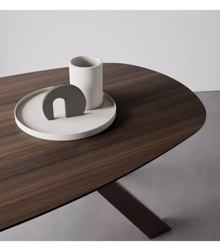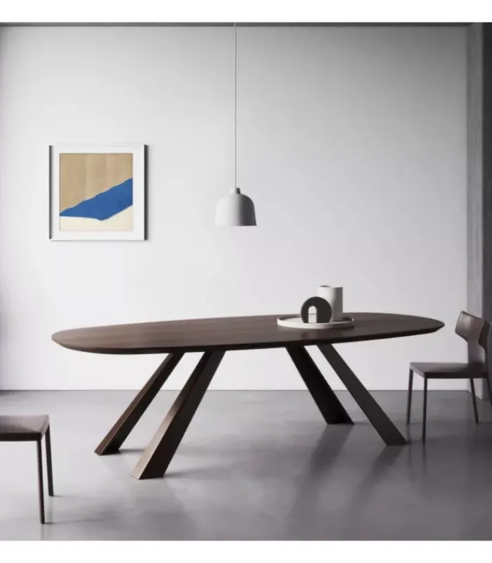 Il tavolo Spider è una scelta ideale per coloro che desiderano un design fisso che trasmetta stile e raffinatezza. Il piano ellittico impiallacciato su listellare dona al tavolo una superficie liscia e durevole, perfetta per ospitare cene e riunioni con familiari e amici. Il bordo bisellato aggiunge un tocco di eleganza al tavolo, enfatizzando il suo design curato nei minimi dettagli.
