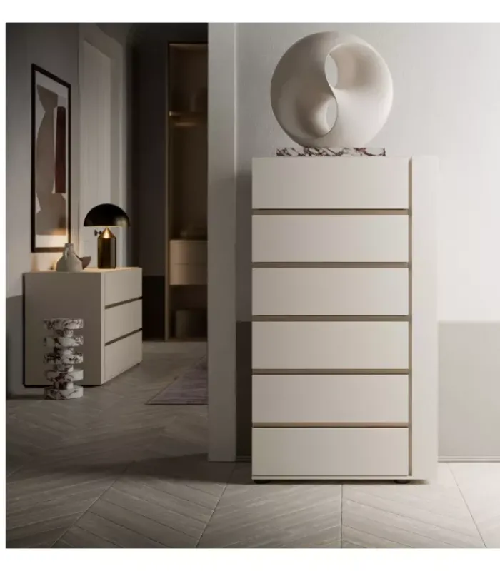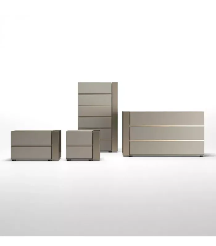 Scopri il gruppo letto modello Dolomia di Santalucia Mobili, disponibile su Arredinitaly. Questo elegante set comprende un comodino, un comò e un settimanale, tutti caratterizzati da un design raffinato e moderno. Il fiancone importante conferisce solidità e stile, mentre le maniglie a gola offrono un tocco di eleganza minimalista.