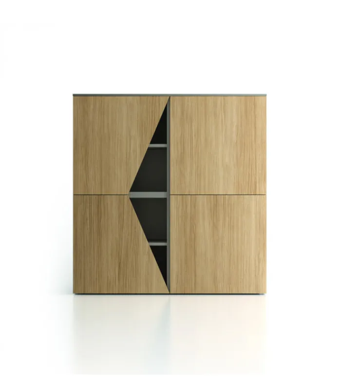Gli elementi Sbieko dal design moderno, trasformano una madia anche in una libreria.