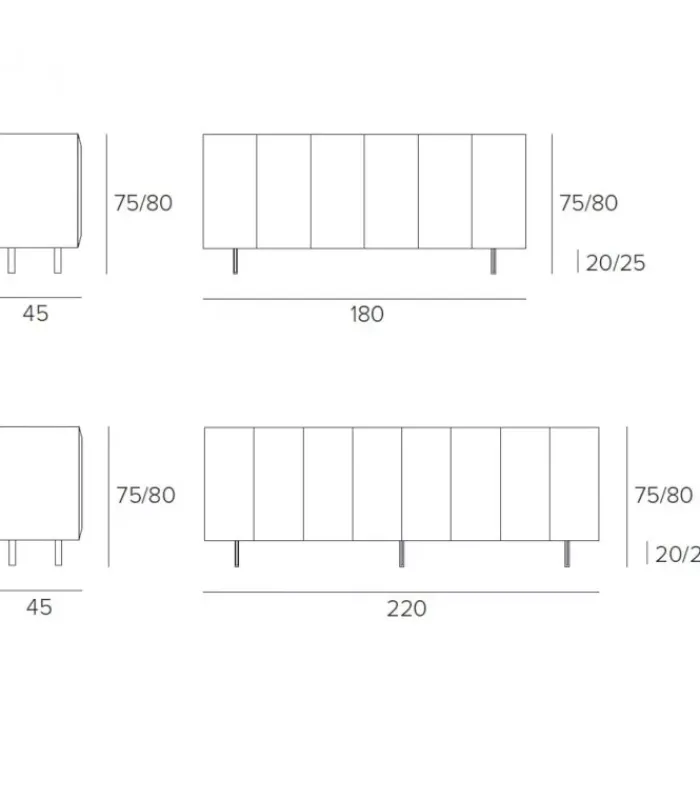 Madia 4 ante con piedino H.20: L. 220 – P. 45 – H. 85