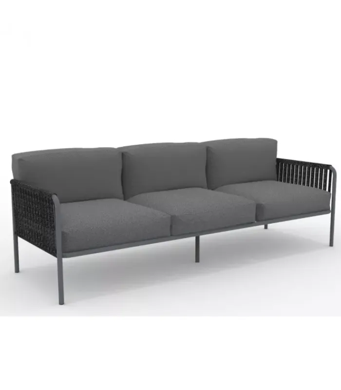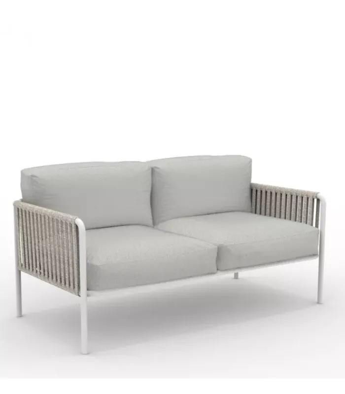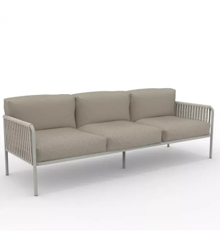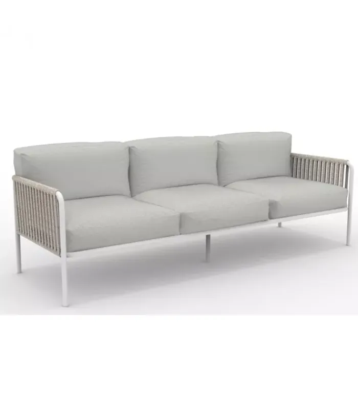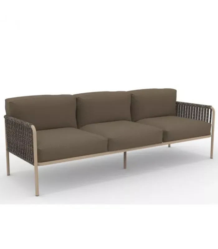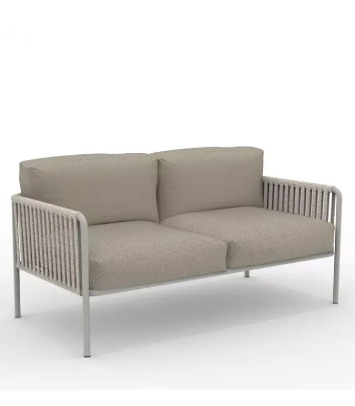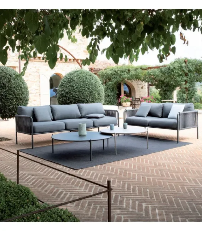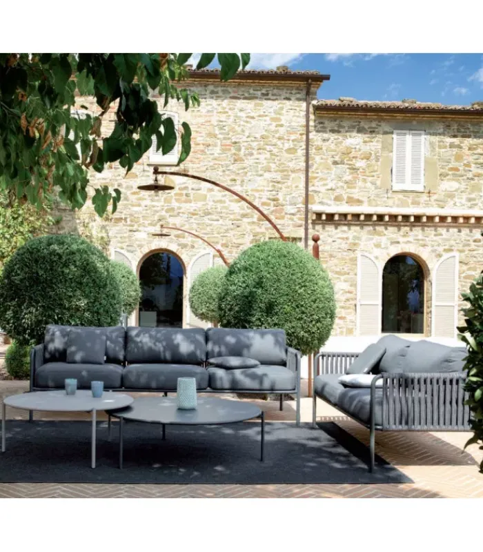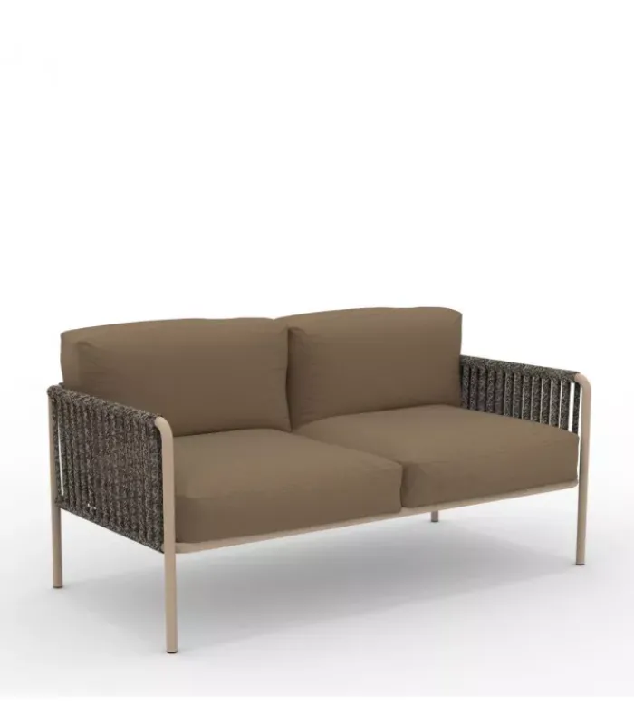 - Le corde intrecciate arricchiscono il design del divano, conferendo un aspetto sofisticato e contemporaneo che si integra facilmente con vari stili di arredamento esterno.