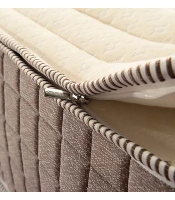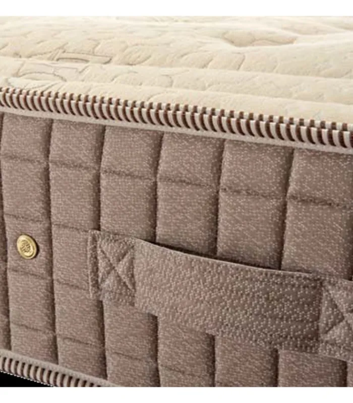 In foto il materasso Amburgo è fotografato con il rivestimento ORGANIC COTTON ELITE, disponibili anche i rivestimenti SIlver Tencel, Cachemire, Bamboo e Anallergico Allo stesso prezzo.