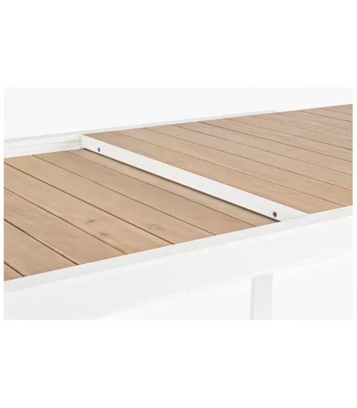 STRUTTURA IN ALLUMINIO VERNICIATO A POLVERE (POLIESTERE). PIANO CON DOGHE IN ALLUMINIO CON VERNICIATURA EFFETTO LEGNO. PIEDINI REGOLABILI. VITERIA IN ACCIAIO INOSSIDABILE. GAMBE DA ASSEMBLARE. – DIMENSIONI IN CM. 220/340 (L.) 100 (P.) 75 H