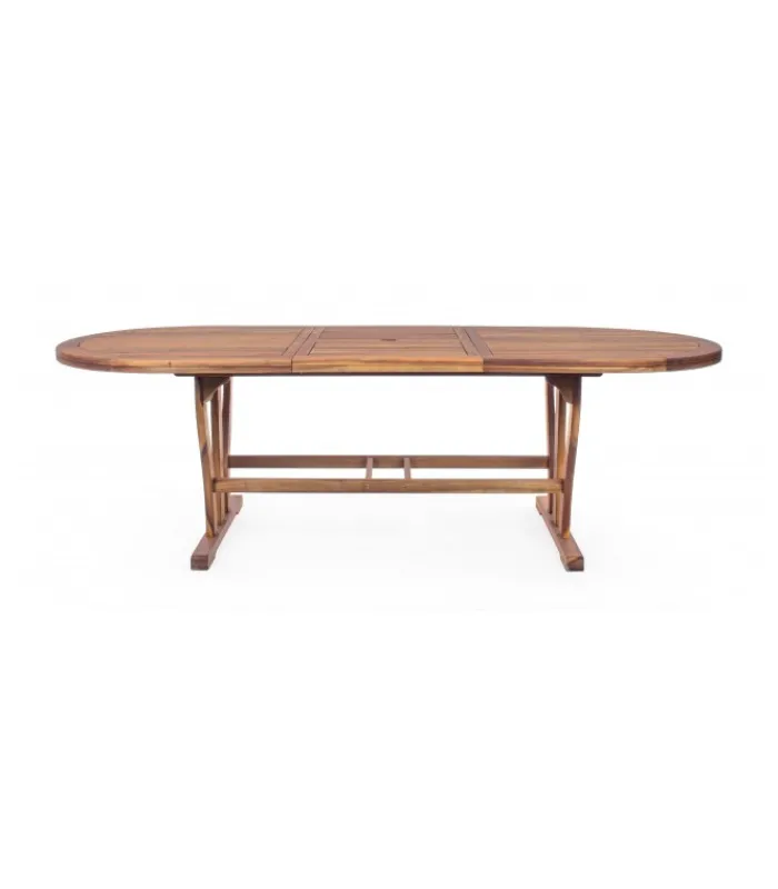 LEGNO DI ACACIA, DOPPIO BORDO, FINITURA AD OLIO, VITERIA IN ACCIAIO GALVANIZZATO, ALLUNGABILE,BARRA DI SCORRIMENTO IN PLASTICA. PRODOTTO DA ASSEMBLARE