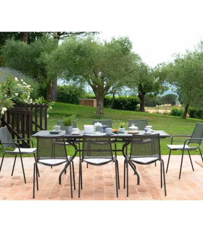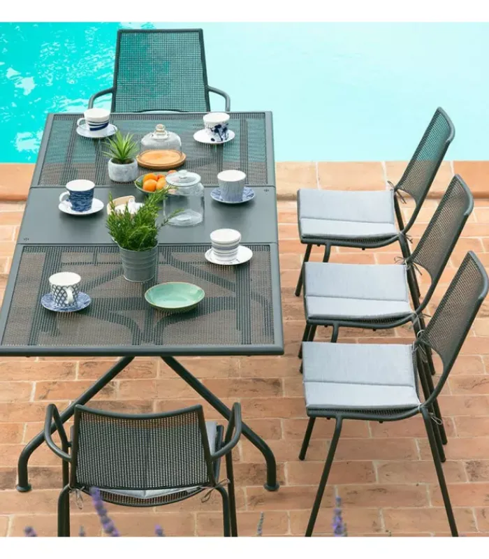 Seduta e schienale con effetto rete metallica: design tipico di Emu che garantisce aerazione, comfort e un’estetica leggera e moderna.