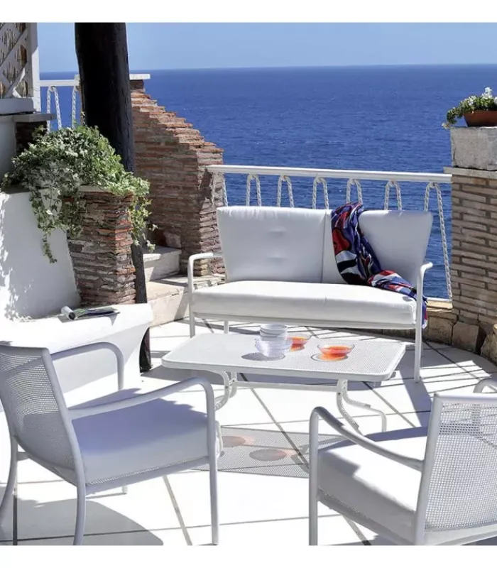 La linea Athena, in acciaio, è una collezione dallo stile classico per un’atmosfera conviviale ma ricercata. Questa collezione è caratterizzata da un inconfondibile motivo ornamentale in lamiera intrecciata, che dona eleganza e carattere alla collezione. Athena è una famiglia di arredi che comprende sedute, tavoli e arredi lounge per ogni momento di relax all’aperto. Le forme avvolgenti e morbide di sedute e chaise longue si combinano con delicatezza ed equilibrata eleganza.
