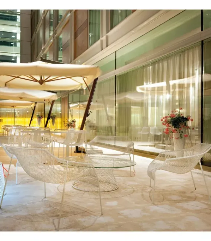 L’idea sottesa al progetto Heaven è quella di leggerezza derivante dalla forma ricavata da spazi vuoti confinati in un intreccio di linee. Il sottile profilo d’acciaio intrecciato è il tratto emblematico di una collezione contraddistinta da armonia e proporzione delle linee. All’acciaio delle sedute si unisce la trasparenza del vetro che contribuisce a dar luce ai piani dei tavoli, donando loro una consistenza immateriale. Le forme armoniche e sofisticate degli arredi Heaven trasmettono un’idea di eleganza non convenzionale.
