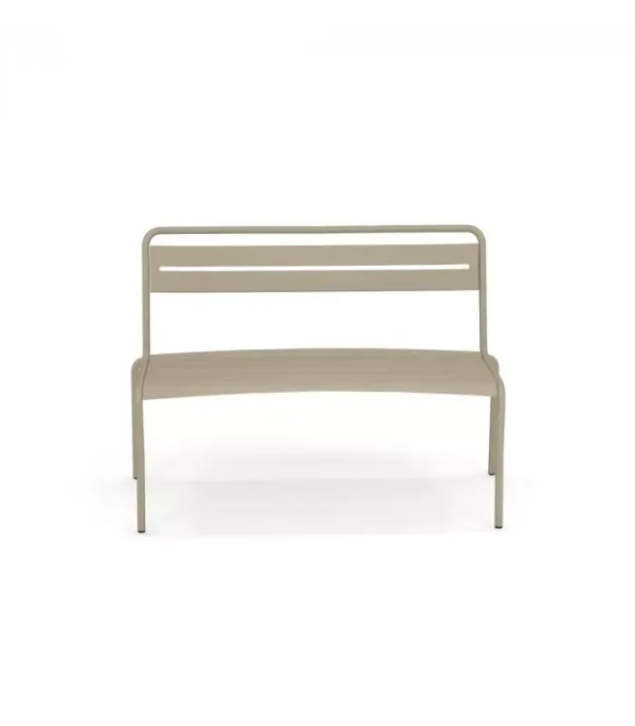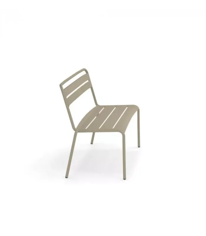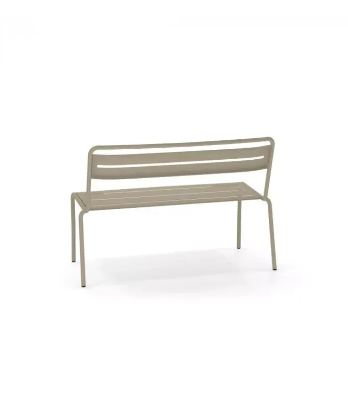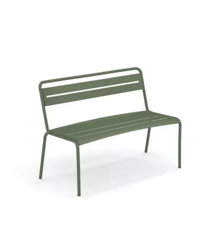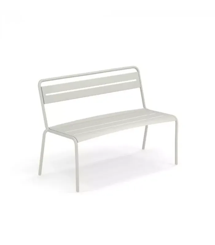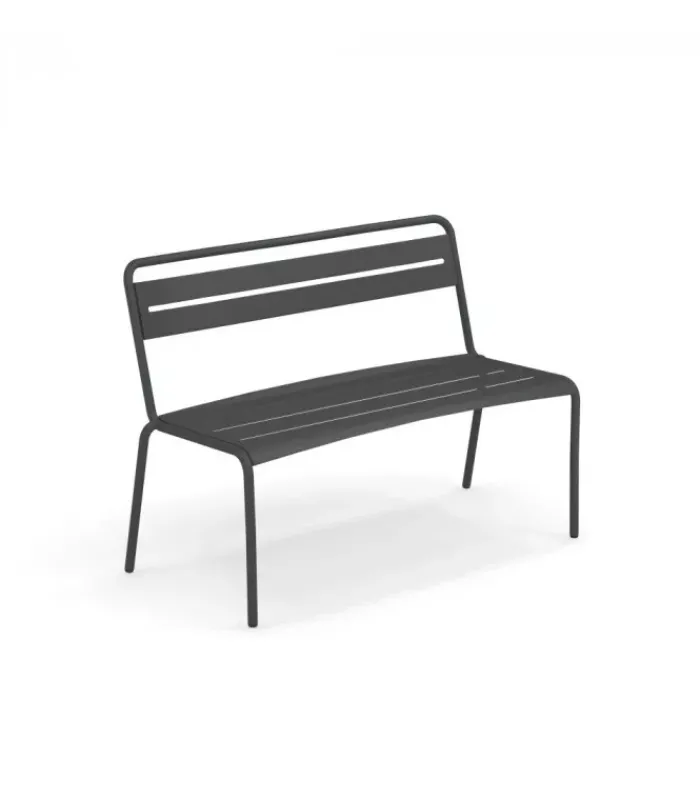 Panca con struttura in acciaio verniciato, la seduta e lo schienale sono in lamiera pre zincata a caldo e verniciata. È disponibile in venti colori diversi ed è impilabile (per un massimo di 8 panche impilate).