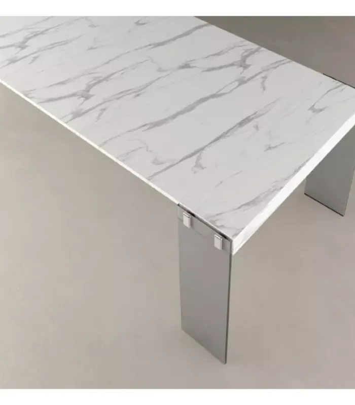 - Piano e allunghe in particelle di legno nobilitato, resistenti e facili da pulire.