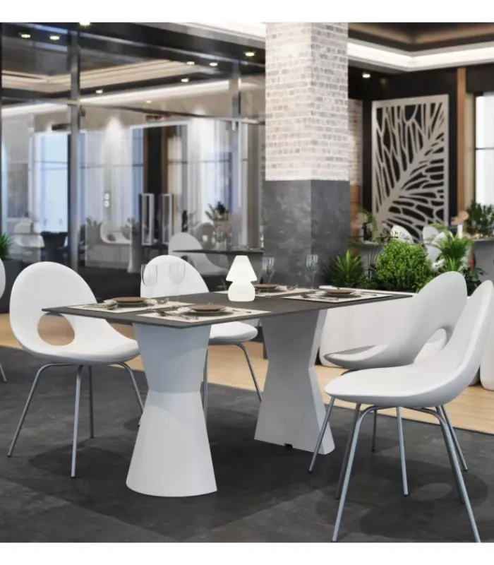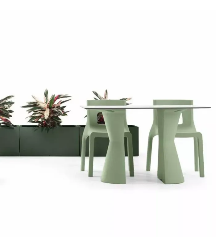 La base per dei tavoli di carattere, ma non impegnativi. Ideale per terrazze e giardini, ma anche per interni. L’abbinamento ai diversi piani in hpl rende possibili numerose combinazioni di colore, permettendo la massima personalizzazione degli ambienti.