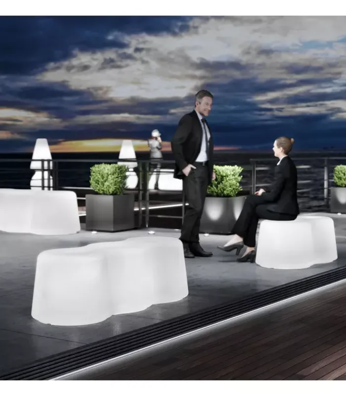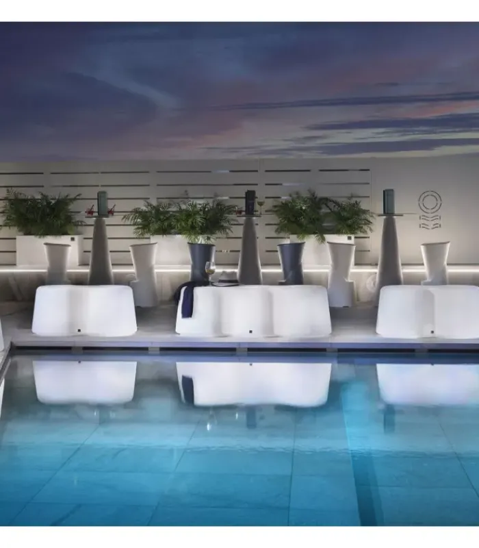 Le panche Peanuts nella loro versione luminosa a LED bianco con cavo, sono ideali per accendere le serate più esclusive e creare un effetto scenografico memorabile. Perfetti nei luoghi all’aperto, a bordo piscina o in giardino per illuminare e arredare allo stesso tempo.