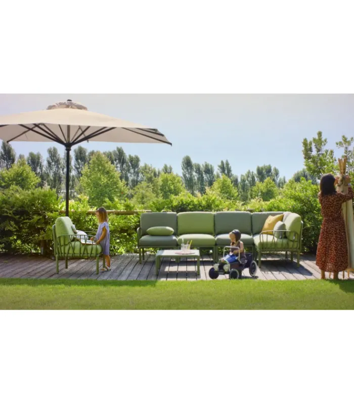 KOMODO POLTRONA fa parte della serie KOMODO di NARDI ultima novità nell’arredo giardino Made in Italy. KOMODO è un progetto di di Design a cura di Raffaello Galiotto che trae ispirazione dalla natura. La trama ramificata della struttura in polipropilene si materializza attraverso un innovativo sistema di aggancio tra i vari elementi, bracciolo, schienale, e seduta corredati da morbidi cuscini in tessuto trattati per uso esterno.