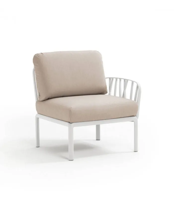 KOMODO di NARDi è dotato di pratici piedini antiscivolo ed è proposto nei colori Bianco, Antracite e Tortora che si abbinano perfettamente ad una serie di cuscini sfoderabili con Zip in tessuto lavabile a 30°.