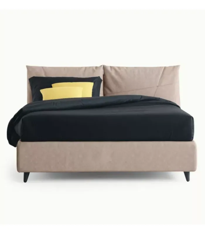 Letto SO CASUAL, disponibile con contenitore (4 modi differenti di alzata della rete) o fisso (con doppio palo orizzontale di sostegno o palo singolo verticale), la rete è ortopedica a 14 doghe (65 millimetri ciascuna) in legno di betulla. È un letto imbottito, con rivestimento sfoderabile, i piedini li puoi scegliere tra diverse forme, diverse dimensioni e diversi colori, in legno, in metallo, in alluminio o in polipropilene.