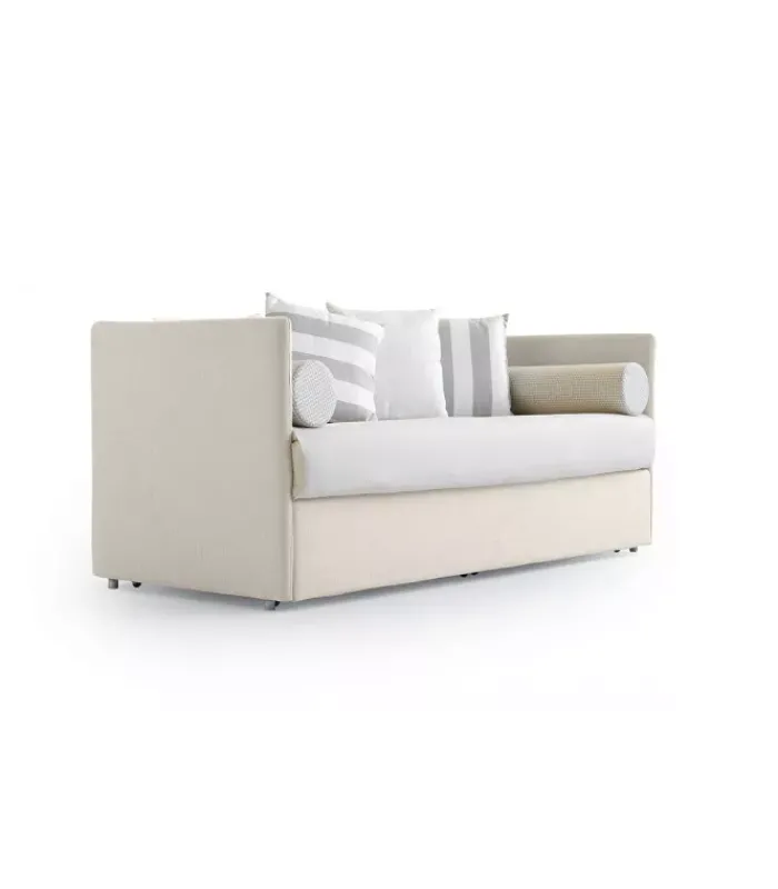 È una piacevole combinazione di gusto e funzionalità. La struttura si estrae creando un’ampia superficie per letto matrimoniale o due letti singoli. Linee morbide, pulite ed essenziali. Materiali innovativi e massima libertà creativa negli accostamenti cromatici. In sintonia con uno stile di vita personale e disinvolto, porta un tocco di originalità in ogni soluzione di arredo.