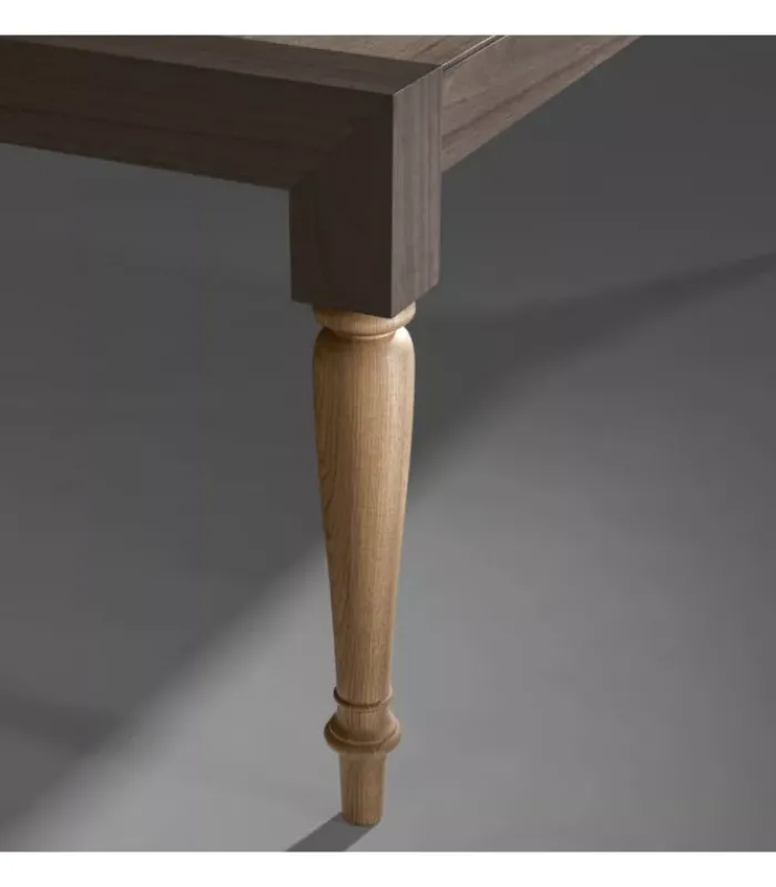 Le gambe tornite in frassino aggiungono un tocco di eleganza al tavolo Meta. La lavorazione artigianale delle gambe conferisce loro una forma sinuosa e unica, che si sposa perfettamente con il design complessivo del tavolo. Il frassino, noto per la sua durata e bellezza intrinseca, aggiunge una sensazione di calore e carattere al tavolo.