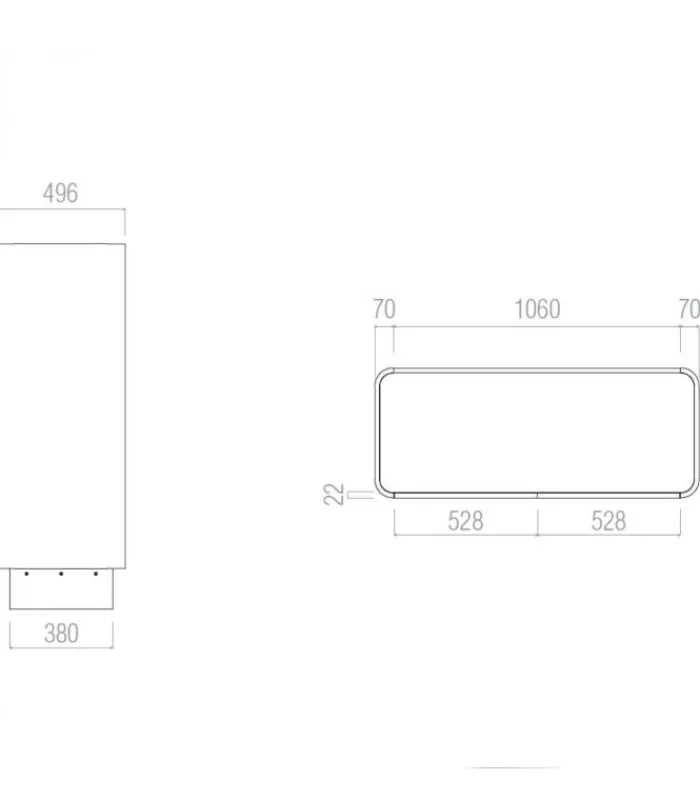 La parte posteriore della scocca è retrofinita. I complementi Aster possono essere posizionati in centro stanza.