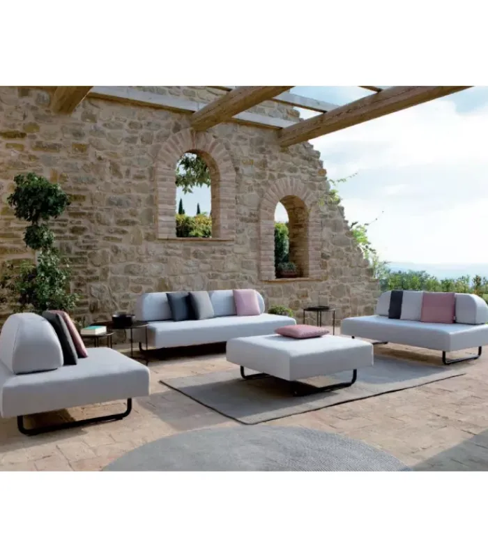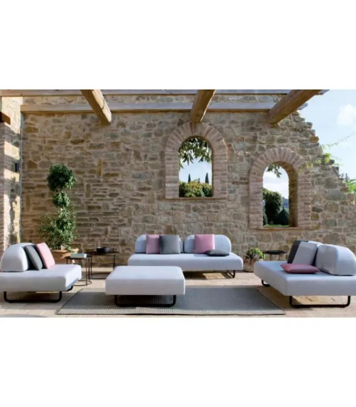 Ergonomia, morbidezza di linee e forme smussate si concentrano e si strutturano in una linea dal design contemporaneo che offre sedute comode e pezzi modulari per combinare in libertà il proprio salotto all’esterno.