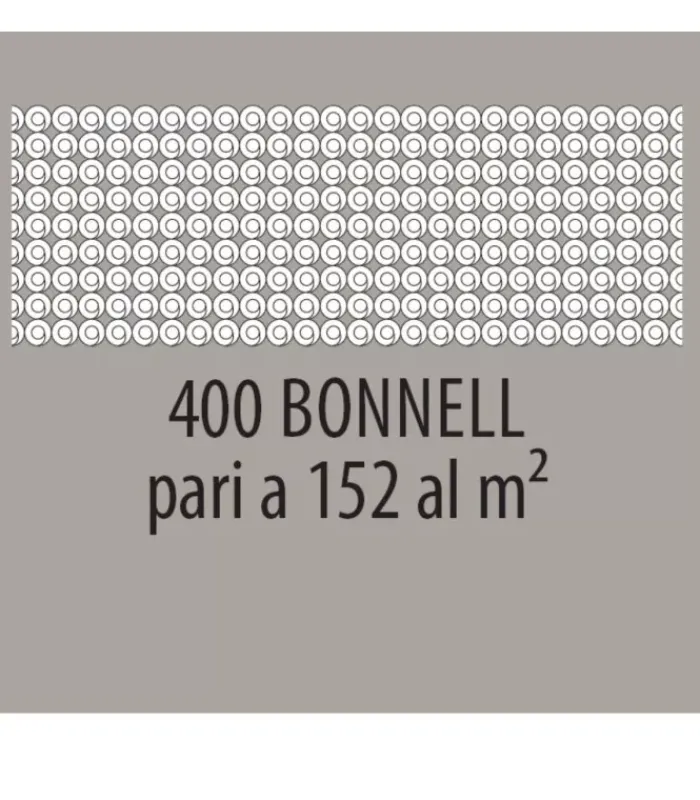 Il molleggio 400 Molle Bonnell, realizzato con molle biconiche in filo di acciaio, garantisce una struttura sostenuta, robusta, affidabile e duratura nel tempo.