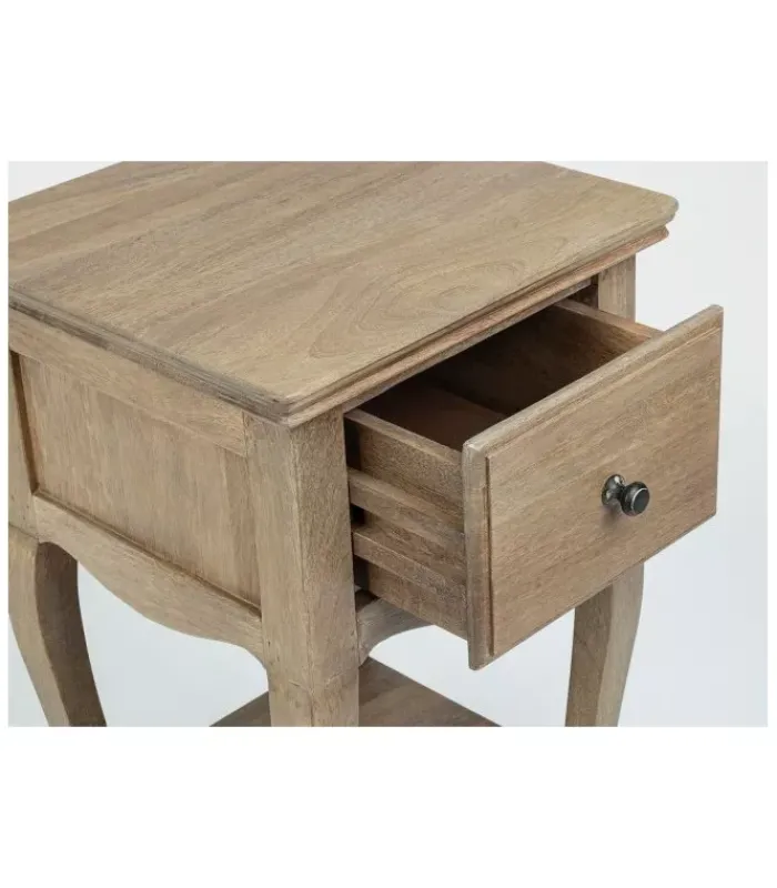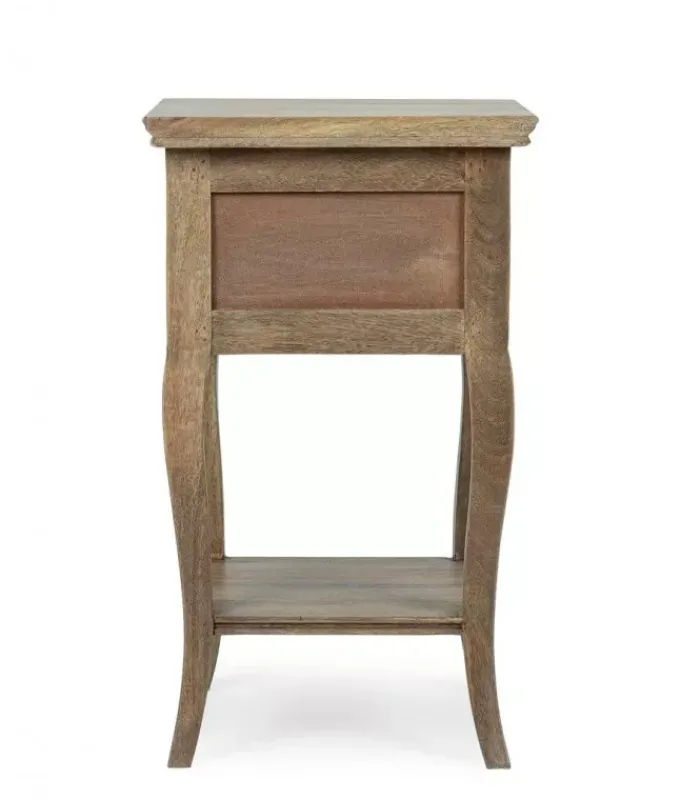 STRUTTURA IN LEGNO DI MANGO, SCHIENALE E FONDO CASSETTI IN MDF. FINITURA CON VERNICE A BASE D’ACQUA. MANIGLIE IN GHISA. – DIMENSIONI IN CM. 35 (L.) 35 (P.) 59 H